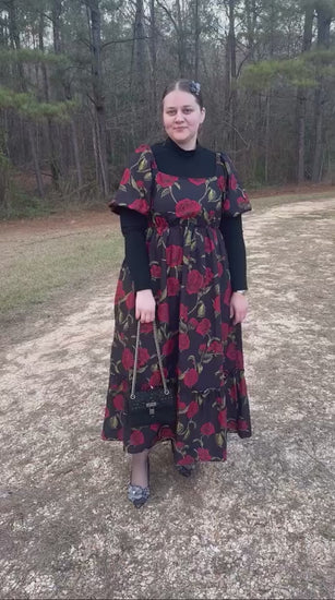 BLACK ROSE PRINTED WOVEN DRESS