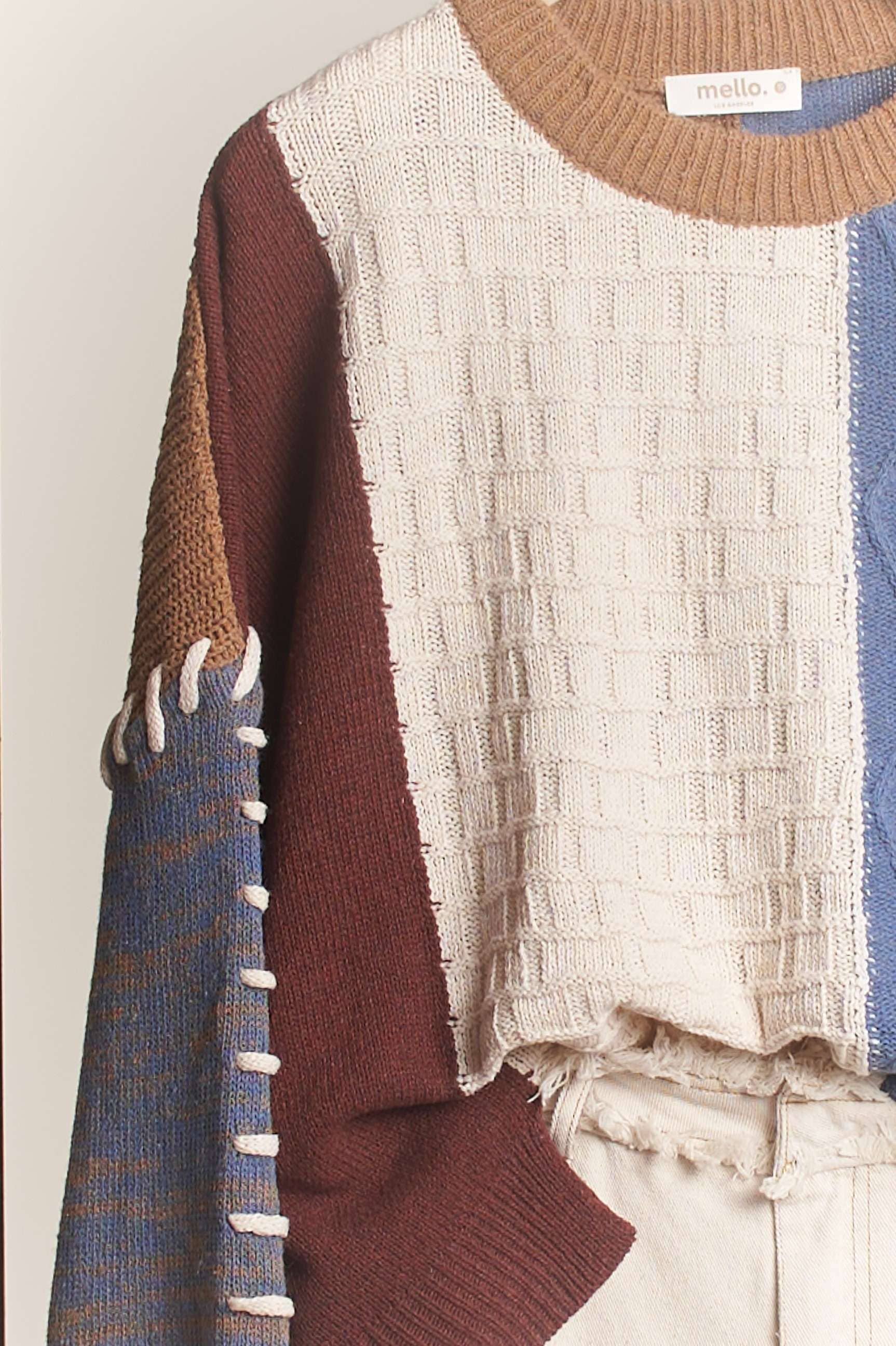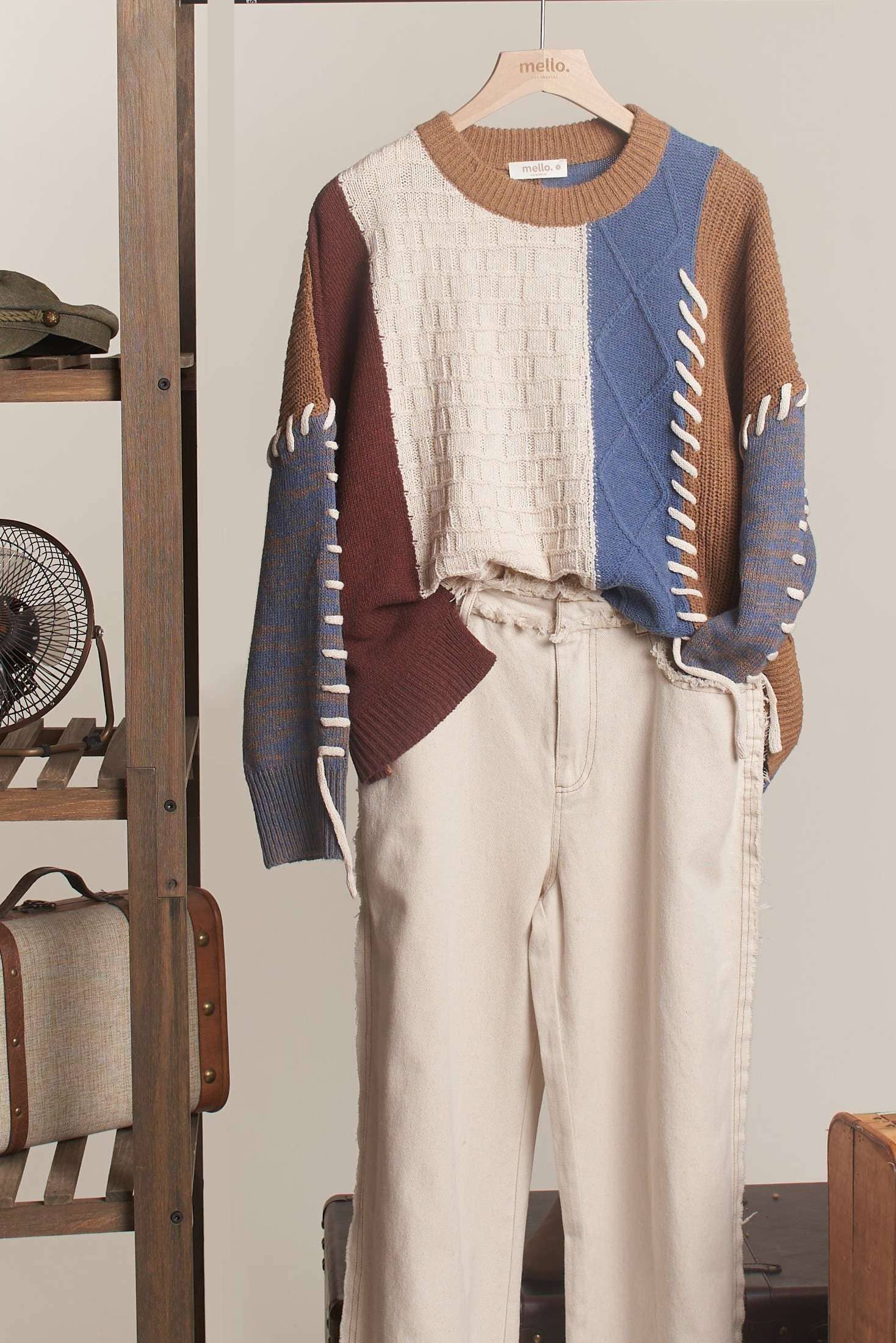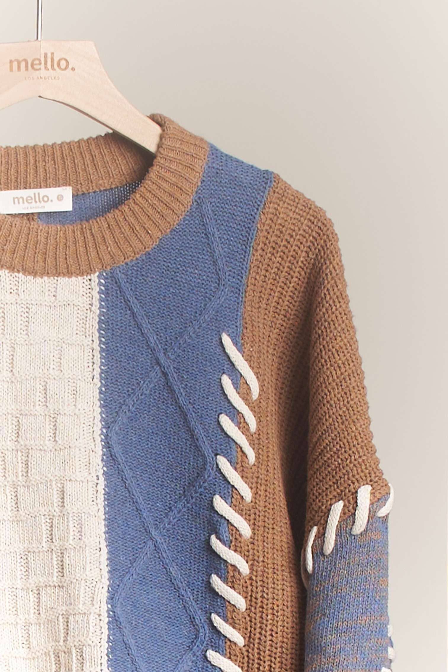 Light Weight Color Block Loose Fit Sweater with Drawstring Details. Model wearing a size small.