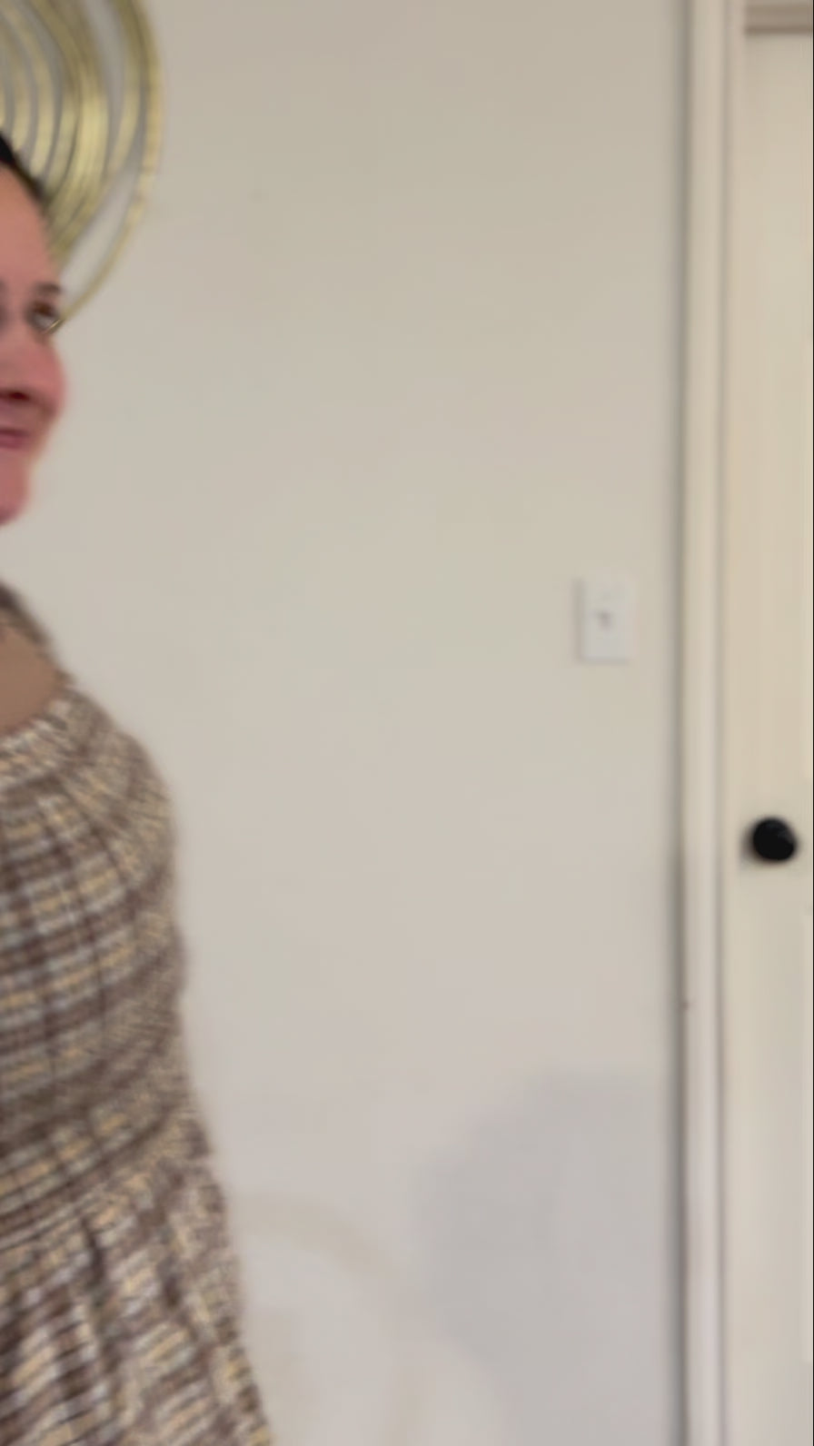 Crinkled plaid smocked top midi dress with puff sleeves and tiered skirt.