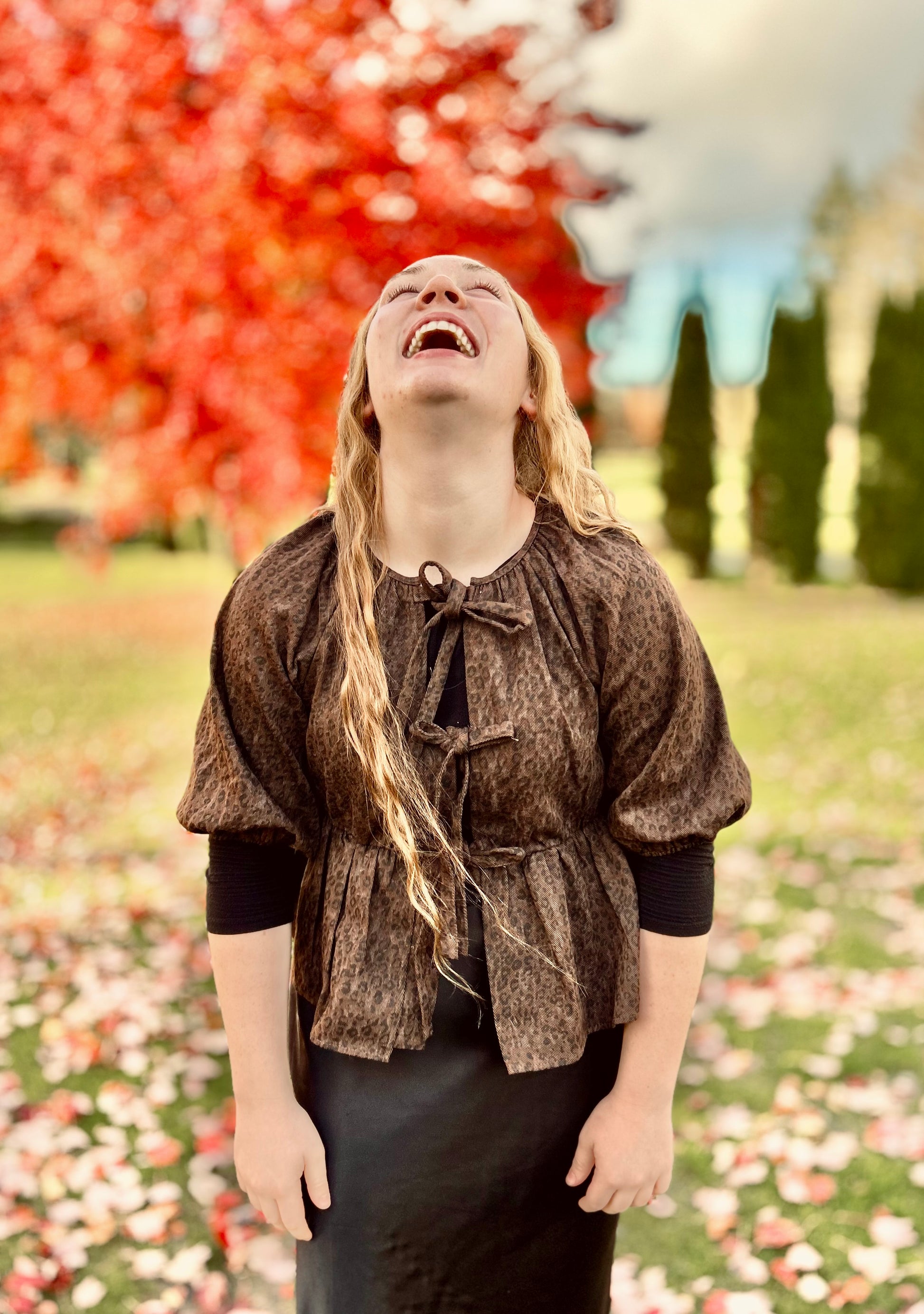 LEOPARD PRINT JACKET TOP WITH TIE