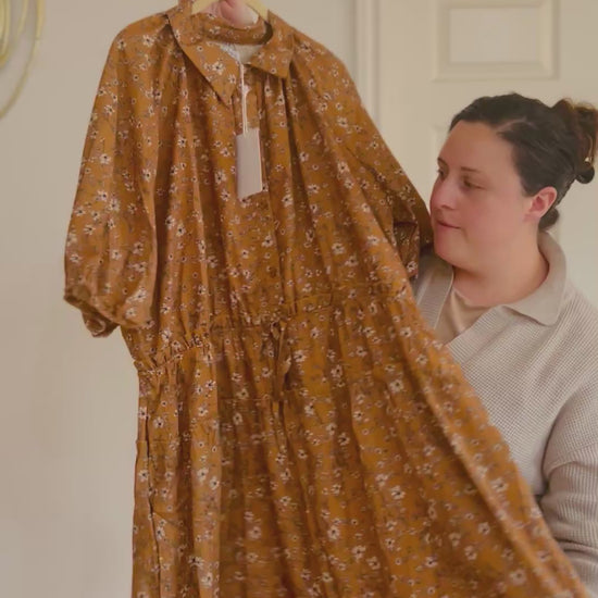 PLUS SIZE FLORAL BUBBLE SLEEVE MIDI DRESS
